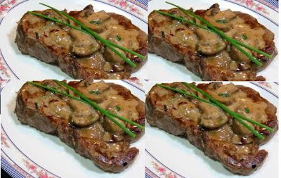 Ανακατέψτε τα υλικά της μαρινάδας και πασπαλίστε τις μπριζόλες. Αλευρώστε τες και σοτάρετε σε 3 κουταλιές ελαιόλαδο σε δυνατή φωτιά για λίγα λεπτά και από τις δύο πλευρές. Βγάλτε τις μπριζόλες από το τηγάνι, ρίξτε το υπόλοιπο ελαιόλαδο και σοτάρετε το κρεμμύδι, το σκόρδο και τα μανιτάρια σε δυνατή φωτιά για λίγα λεπτά. Ρίξτε την μπύρα, αφήστε να πάρει μία βράση και μετά ρίξτε τον χυμό λεμονιού, και αλατοπιπερώστε. Ρίξτε τις μπριζόλες στην σάλτσα να βράσουν για 10 λεπτά και σερβίρετε.